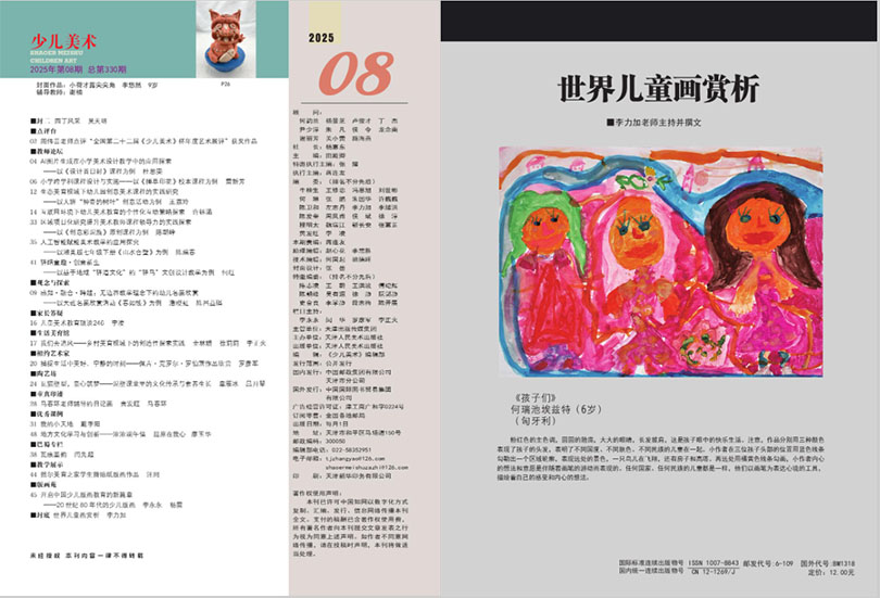 本杂志还会定期举办一些儿童美术比赛和展览。通过比赛和展览,可以为孩子们提供展示自己作品的机会,激发他们的竞争意识和自信心。同时,通过比赛和展览还可以促进孩子们之间的交流和合作,共同成长。总之该杂志是一本专门为儿童美术教育工作者和家长提供教学资源和指导的学术刊物。它的出版既促进了儿童美术教育的发展,也为孩子们提供了更好的学习和展示平台,培养他们对艺术的兴趣和创造力。